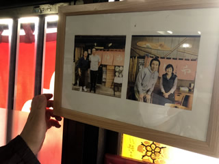ふと入り口の横を見ると、何やら店主と女将さんが背の高い人物と写った写真が。