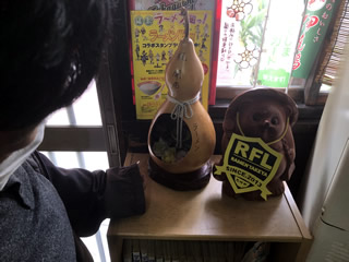 タヌキはが腹に付けている盾には『RFL RAMENTAKEYA since2013』の文字。