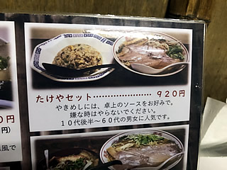 お!やきめしが付いた「たけやセット」がお得だな。すいませーん、コレください!!