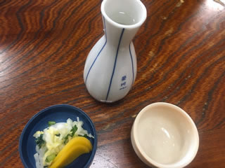 しかし、まずは、朝昼食は飲まずの誓いをあっさり破り、あまりに寒い!ので熱燗を注文。