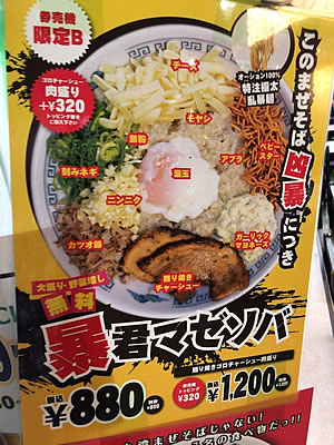 しかもアオリの方は"まぜそば"なのに品名の方は”マゼソバ”と無駄に言い換えている。