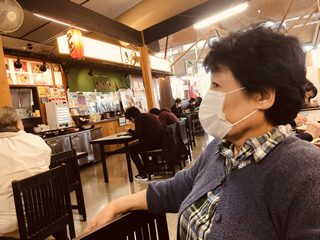 『みどり湯食堂』の方には若者を中心にそれなりのお客で埋まっていますけれど、こちらはロマンスグレーのおじ様が一人だけ出来上がりを待っている。