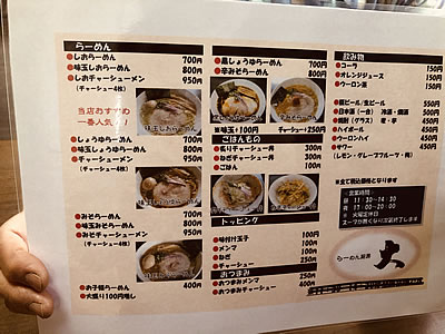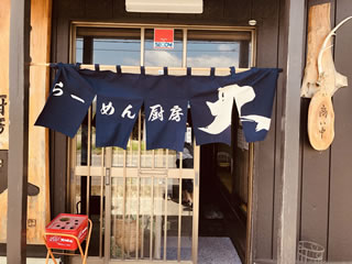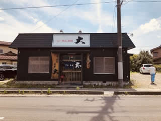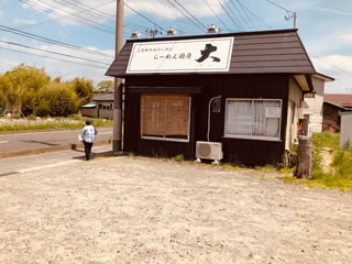 「らーめん厨房 大」の暖簾がちょっと風で縒れてるけど(笑)