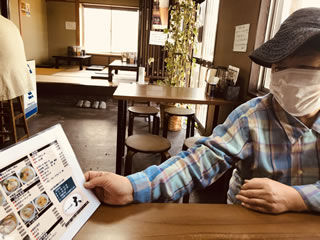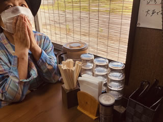 ということなので、入り口で手の消毒をシュッシュとやって一番奥のテーブル席に。
