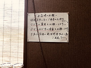 ふと、壁を見上げると「ご来店時のお願い」が。