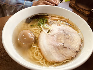 特に塩らーめんは見た目が大事。透き通った淡麗スープに細麺のチョイスもグッド。