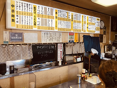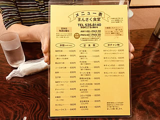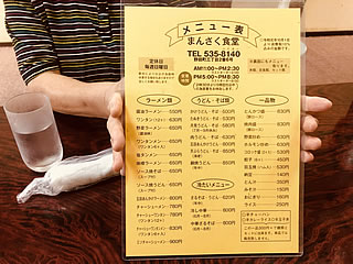 中華麺類から始まって生そば、うどん類、丼類、定食類に・・冷やしラーメンなど「冷たいメニューは6月~8月迄」のラインナップ、そして一品物、お飲み物等々。