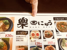 どうやら「半熟煮卵」が載っているのが原因のようですが、真ん中の『トッピング』のところには半熟煮卵(120円)と別に出ている。