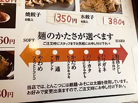 で、とんこつらーめん屋では、そのほか必ず「麺のかたさ」を指定しなくてはならない。