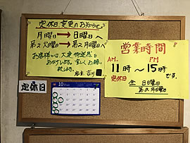 『定休日変更のお報せ』という黄色い紙が貼ってあり・・