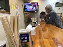 違うのは、向かい側の壁の板メニューが絵に変わっている事。