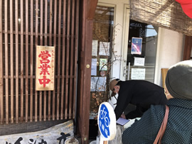 で、中の順番表に名前を書いて列の後ろに並ぶ。でも強風に煽られてかなり寒い。