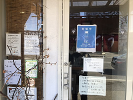 つーか、入口にベタベタといろんなものが貼ってある。何だアレ?