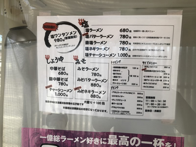 ~などと続く。比較して『しょうゆ』や『みそ』の扱いは小さい。どうやら『塩ラーメン』がこの店のウリのようだ。