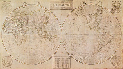 アロースミスの「世界図」を原画として日本を中心とした「東半球」・「西半球」が描かれていますが、東アジアについては大幅に改訂され、当時としては最も精巧な世界図であったのです。