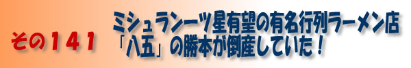 有名行列ラーメン店「八五」の勝本が倒産していた!」” ///