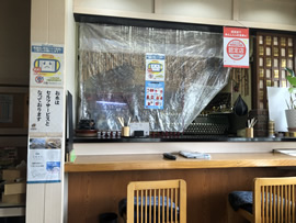 僕らが座っている入口付近のテーブルの前には、居酒屋の「窓」のようなものがあるが、ビニール幕で封鎖されている。