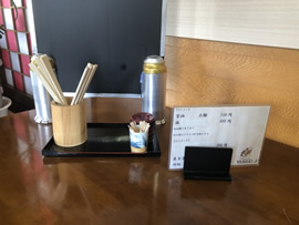 どことなく殺風景なテーブルの上。そっか、割り箸の数が少ないんだ。そして、テーブル胡椒など、あるべき調味料も置かれていない。ティッシュなども。