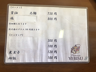 メニューはラーメンの醤油・太麺(750円)と塩(800円)の二種類だけらしい。
