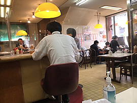 店内はこんな感じ↓ カウンターとテーブルが配置されている。