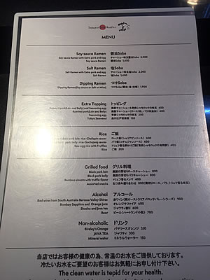 券売機はなく、カウンターに座ってメニューを見て注文するのだが、このメニューが目ん玉が飛び出るような代物でビックリ。