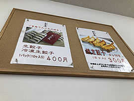 なるほど、持ち帰り餃子。焼き餃子が300円で生(冷凍)餃子は10個入りで400円。まあまあの値付けだな。