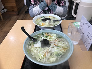 ほんじゃタンメンのフツーと大盛り。ついでに餃子も一人前!