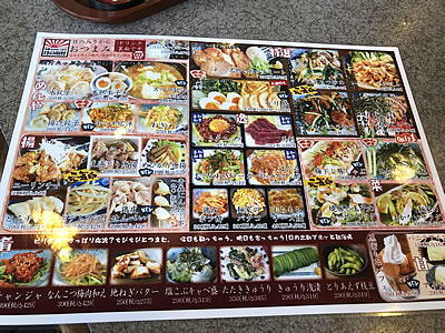 裏面はおつまみ専用で、とんでもない種類がある。「中華そばおつまみ 日の出軒」としたのはダテじゃなく、夜は完全に『ラーメン居酒屋』と化す。