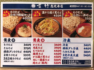 恵比寿駅からすぐの駒沢通り沿いに「さ竹」という立ち食い蕎麦屋がある。