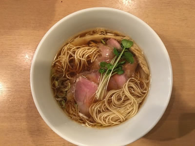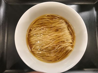 低加水中細ストレート麺に、カツオ節、昆布などの魚介系スープがベースで動物系は使っていないのではないか。鶏油が加えられているかもしれない。