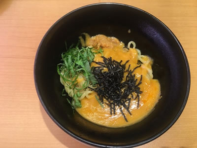 ラーメンでは鯛ラーメンとウニラーメンを食べたが、特に本物のウニをトッピングしたまぜそばがあのラ・ベットラ落合務オーナーシェフのウニのクリームパスタを思わせるような出来上がりになっていてこれは旨かった。