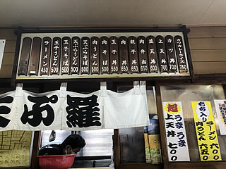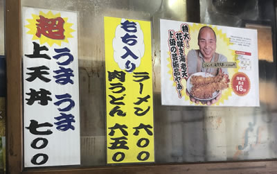 右端メニューは「カツカレーライス 750円」、そして「カツ丼 700円」、「上天丼 700円」・・「ラーメン」は逆端で450円。どれもこれも非常にリーズナブルだ。