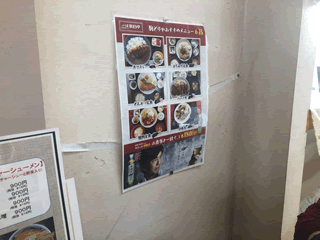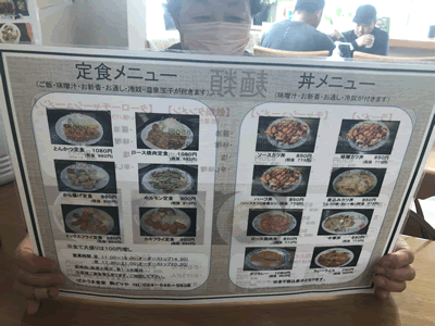 最初はカツカレーで、から揚げ定食、とんかつ定食、ハーフ丼、焼肉定食、中華丼の六種。値段はいずれも黒塗りしてあった。
