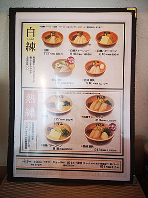 こちらのメニューには「白練」・「熟練」・「金練」・「赤練」という4シリーズが。
