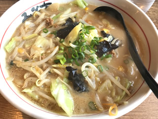 こちらは白味噌系統で、肉味噌とモヤシのトッピング。