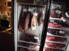 そこにあったのは、吊るした熟成肉。でも、カビが付いている様子はありません。