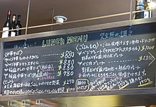 たなつもの店の壁 (福島市) ←ボトルは飾りらしい。 |