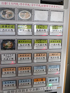 最上段のらーめん系を見ると、「中華そば600円」・「大盛中華そば730円」・「特大中華そば900円」、それに「豚バラ肉中華そば950円」・・・これはチャーシューメンか。同様に「大盛」と「特大」が。