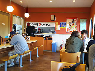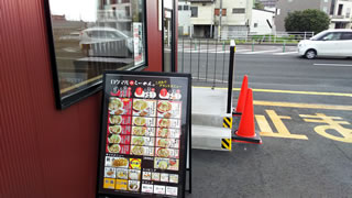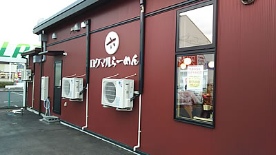 このロクマルらーめんは全国チェーンのようであり、もしかすると、全ての店舗が同じ構造になっている‥‥たまたまここでは、入口が走行路側になってしまったのかもしれませんが。