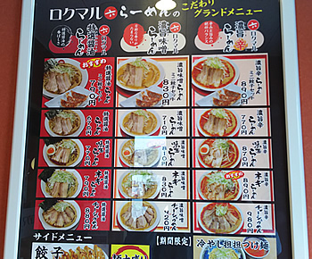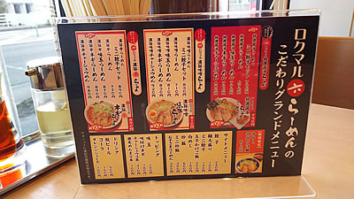 ということで、テーブルの上に目をやりますと、ここにも『ロクマルらーめんのこだわりグランドメニュー』が。