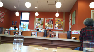 こんな感じに、突き当りに調理場の品出しカウンターがあります。