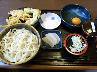 下見てください。夏期限定の冷やしかき揚げうどん600円。(美味いんだコレが・・)