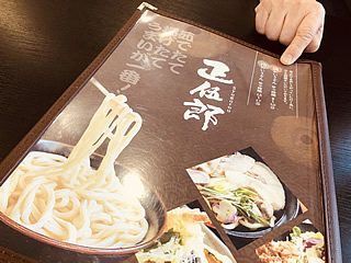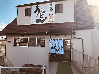 店主とおぼしきキャラクター入りで『阿武隈うどん/正伍郎』。