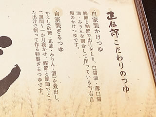 なるほど。かけつゆは鰹節と鯖節の出汁に白醤油・薄口醤油・みりんか。