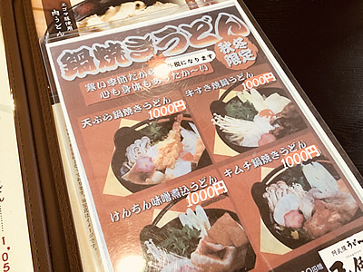 実は、一昨年でしたか、家の近くの丸亀製麺でも季節メニューで「鍋焼きうどん」を出していた時期がありました。