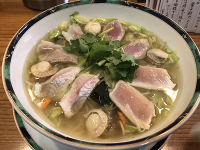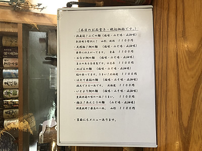 小柱のスーラータンメン(1,080円)、もんごういかのとろみ麺(1,100円)などなど・・前には鯛やフグなどもあったと思うが本日のメニューには載ってない。