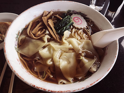 と、いつもの注文で。ココは「ホルモン炒め」とか数多くの絶品メニューがあると聞くが、ワンタン麺と餃子があまりに美味しいので、つい同じものばかり注文してしまう。