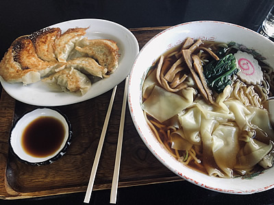 ちわ~ ワンタン麺の大盛と焼き餃子一枚!