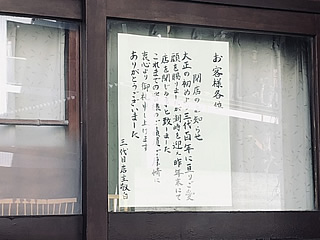 大正の初めより三代百年に亘りご愛顧を賜りましたが潮時を迎え