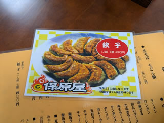 ほかに餃子が別メニューのポップで添えてあり、店の名物らしい。